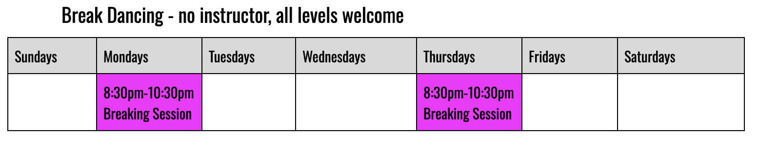 Open Gym is a designated time for students to work on skills they have learned from class or freestyle to improve themselves. This is a shared space where students of all skill levels share knowledge and comradery. It can seem very intimidating at first, but once you give it a chance, everyone is super welcoming and eager to help work on any skill. We have beginners and veterans show up and intermingle, so making friends is super easy.